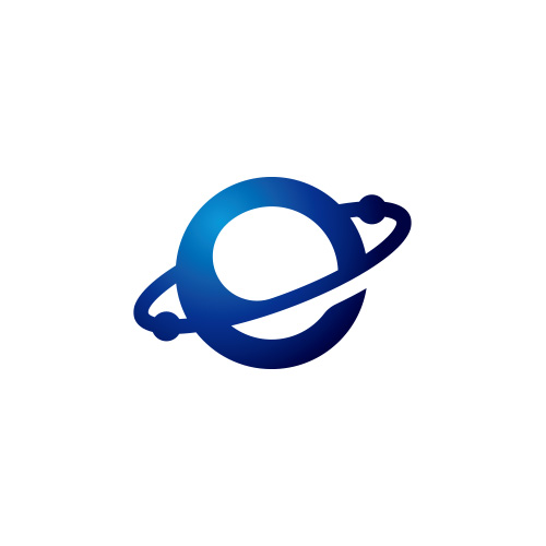 「e」の宇宙をイメージしたロゴ