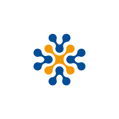 「X」とニューロンをイメージしたロゴ